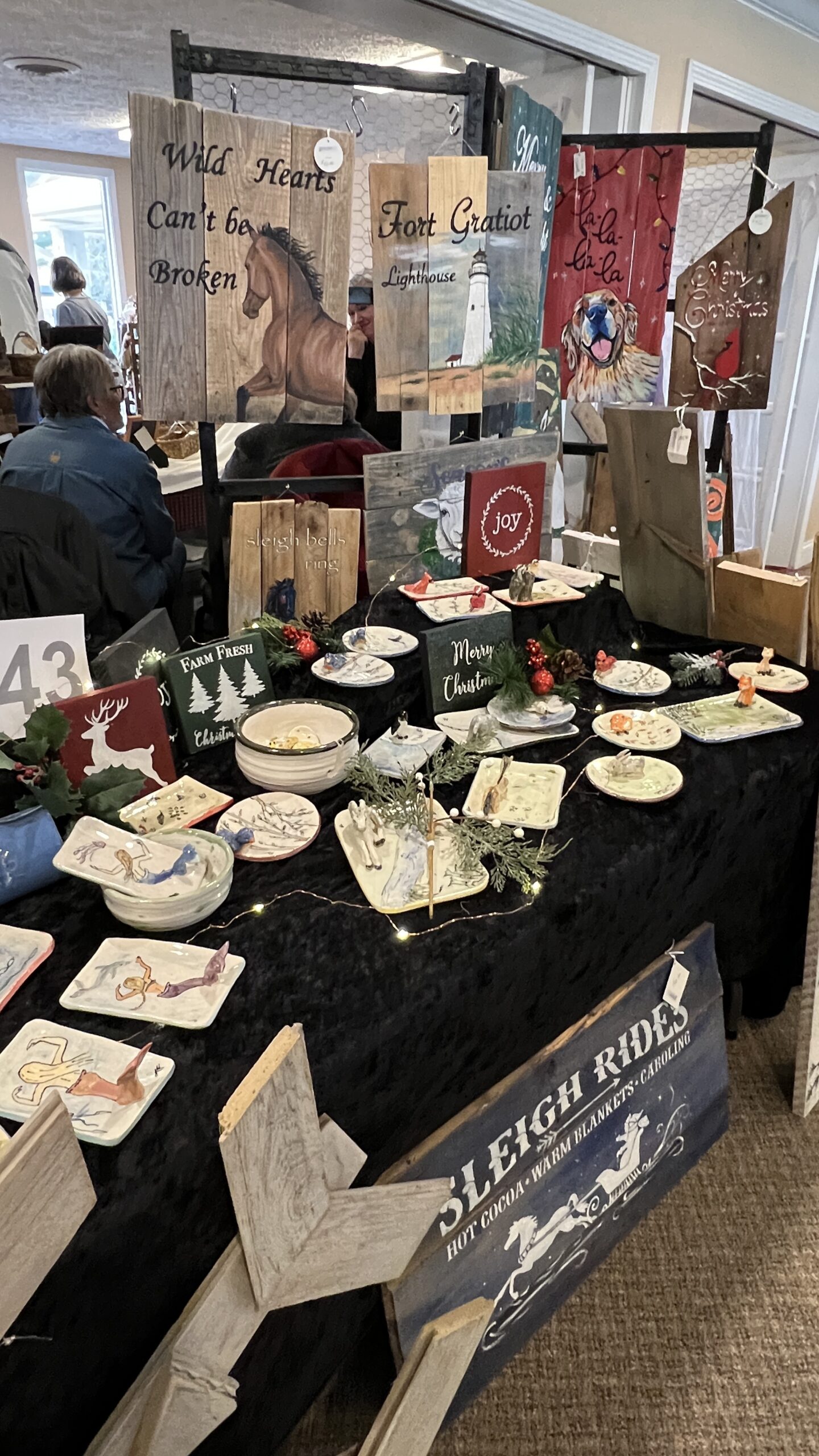 “Since graduating from Oakland University, I’ve channeled my creativity into crafting unique pottery and indoor-outdoor paintings. My work stems from a personal need to find decorative pieces that resonate with my aesthetic, and I’ve discovered many others share this desire. My pottery adds a touch of personalized charm to kitchens and homes, while my evolving outdoor paintings, particularly welcome signs featuring custom pet portraits, bring a warm, inviting feel to any space. I’m now expanding my outdoor repertoire to include larger scenic landscapes, aiming to create immersive atmospheres for porches and decks.”